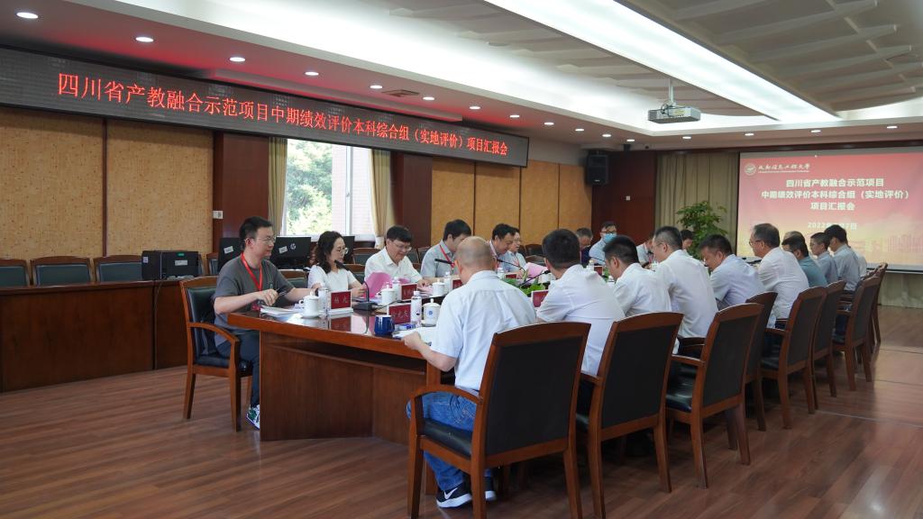 【本网讯】根据《四川省财政厅四川省教育厅四川省经济和信息化厅四川省科学技术厅关于开展四川省首批产教融合示范项目中期绩效评价工作的通知》,受四厅的联合委托,7月7日,以安徽大学党委书记蔡敬民教授为组长的专家组一行10人,对学校与中国电子科技网络信息安全有限公司共建的四川省首批产教融合示范项目——成信大—中国网安电子信息产业产教融合综合示范建设进行了中期绩效评价实地评价。学校校长余敏明、副校长何建新、舒红平、朱明,相关职能部门和学院负责人参加了汇报会。朱明主持汇报会。