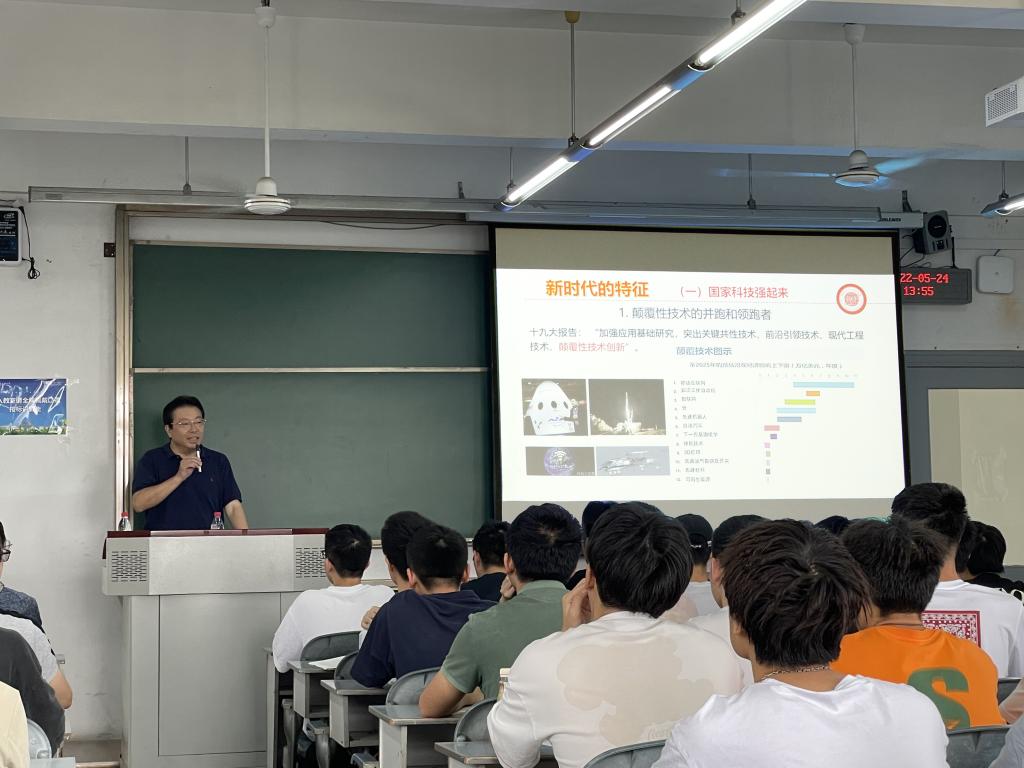 课堂上,周激流还从计算机领域专家的视野,给同学们讲述了全球12项未来颠覆性技术,并一一阐明我国在这些未来技术方面的实力和水平,展示新时代中国取得的伟大成就。他讲到,我国新一代5G通信技术、人工智能发展走在世界前列,在高性能计算、量子通信、区块链技术、高铁技术等方面处于国际先进水平,在先进材料、可再生能源等方面也处于国际第一方阵,并用详实的数据、丰富的图片和生动的视频,向同学们展示了我国在这些颠覆性技术领域的成果及发展蓝图。
