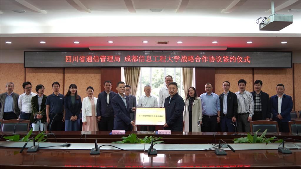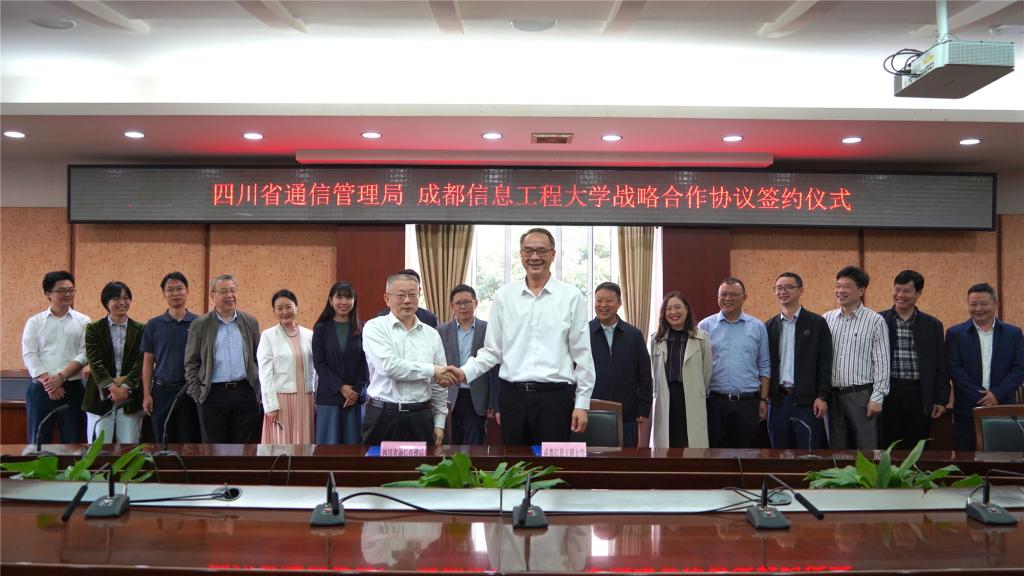 【本网讯】5月17日是世界电信和信息社会日。上午,四川省通信管理局党组书记、局长邢海英,党组成员、纪检组长、副局长刘小文一行来校交流,并与伟德官网签署战略合作协议。学校校长余敏明、副校长舒红平参加了交流座谈会。会议由舒红平主持。