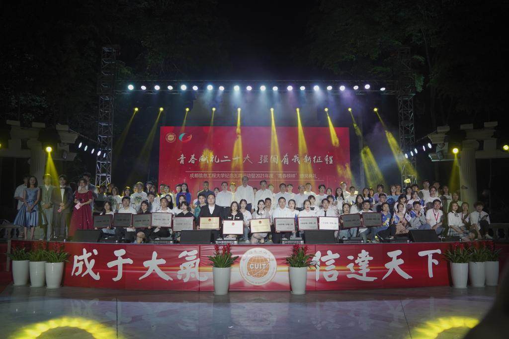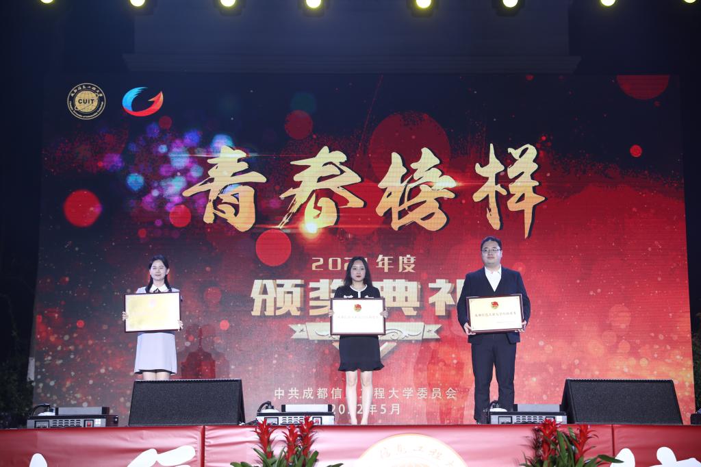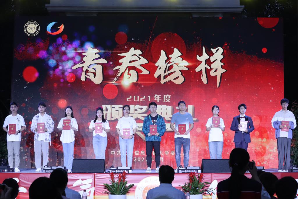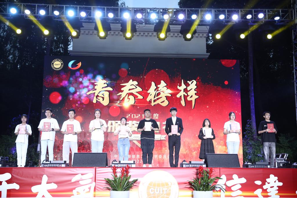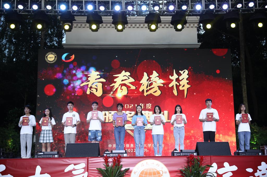 在热烈的掌声中,学校领导为2021年度“青春榜样”获奖个人和集体颁奖。