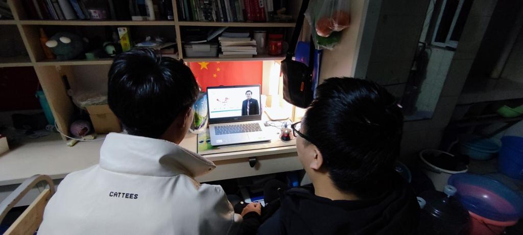 结合新冠疫情防控情况,学校积极动员并组织师生在家里、宿舍或教室,于2月27日晚20:50准时在四川广播电视台科教频道(四川教育电视台)、四川省公共资源服务平台、四川教育发布微信公众号、易班网、学习强国等平台观看“开学第一课”专题节目,并以线上或现场交流,以及书写观后感等方式分享心得体会。