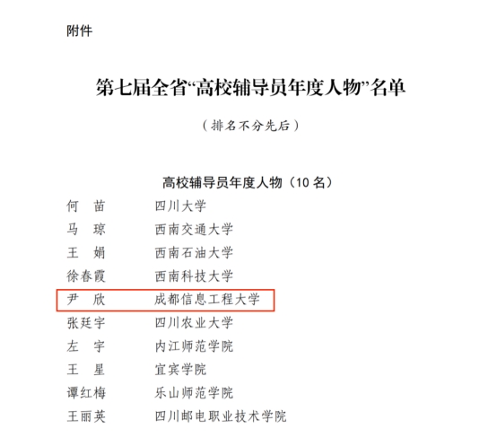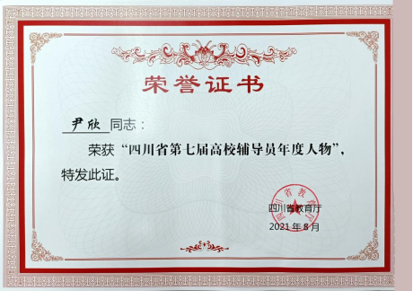 【本网讯】9月7日,全省高校辅导员队伍建设座谈会在成都召开,副省长罗强出席会议并讲话。会上,省委教育工委书记李建勤宣读了《四川省教育厅关于公布第七届全省“高校辅导员年度人物”评选结果的通知》。伟德官网大气科学学院辅导员尹欣获评“高校辅导员年度人物”称号,也是伟德官网连续第二年获此殊荣。