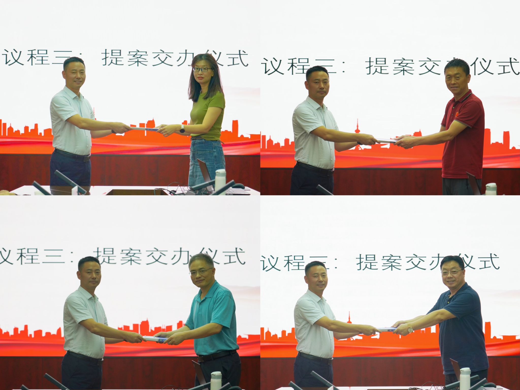 陈权亮代表学校向相关职能部门移交了提案。各部门汇报了提案的办理方向及思路。