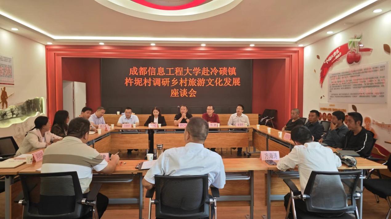 在冷碛镇杵坭村,召开乡村旅游文化发展座谈会,商讨充分发挥当地红色文化旅游资源,开发杵坭村的乡村旅游特色产品,并就与冷碛镇联合举办“乡村文化旅游专业技能培训班”及建立城乡融合发展实践教学基地事宜达成共识。会后,调研组一行重走长征路。