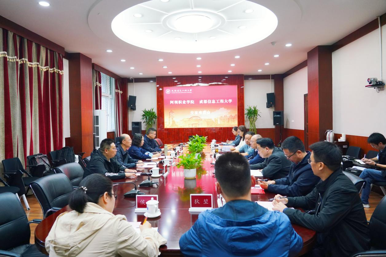 阿坝职业学院副院长龙涛、相关职能部门负责人,伟德官网党委组织部、党委学生工作部、国内合作处(校友办公室)、人事处、科技处、教务处、信息中心、马克思主义学院、继续教育学院等部门负责人参加座谈。