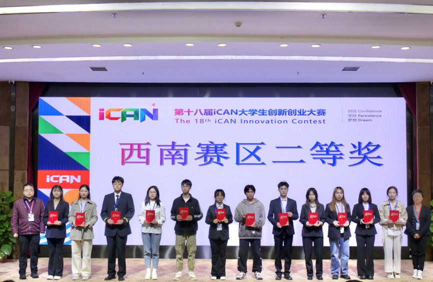 经过现场答辩和专家评议,本次iCAN西南赛区选拔赛最终评选出一等奖队伍41支、二等奖队伍63支。伟德官网学子获得一等奖4项、二等奖4项,电子工程学院余小敏、颜廷昱获优秀指导老师奖。参会领导和嘉宾为获奖选手和教师颁奖。