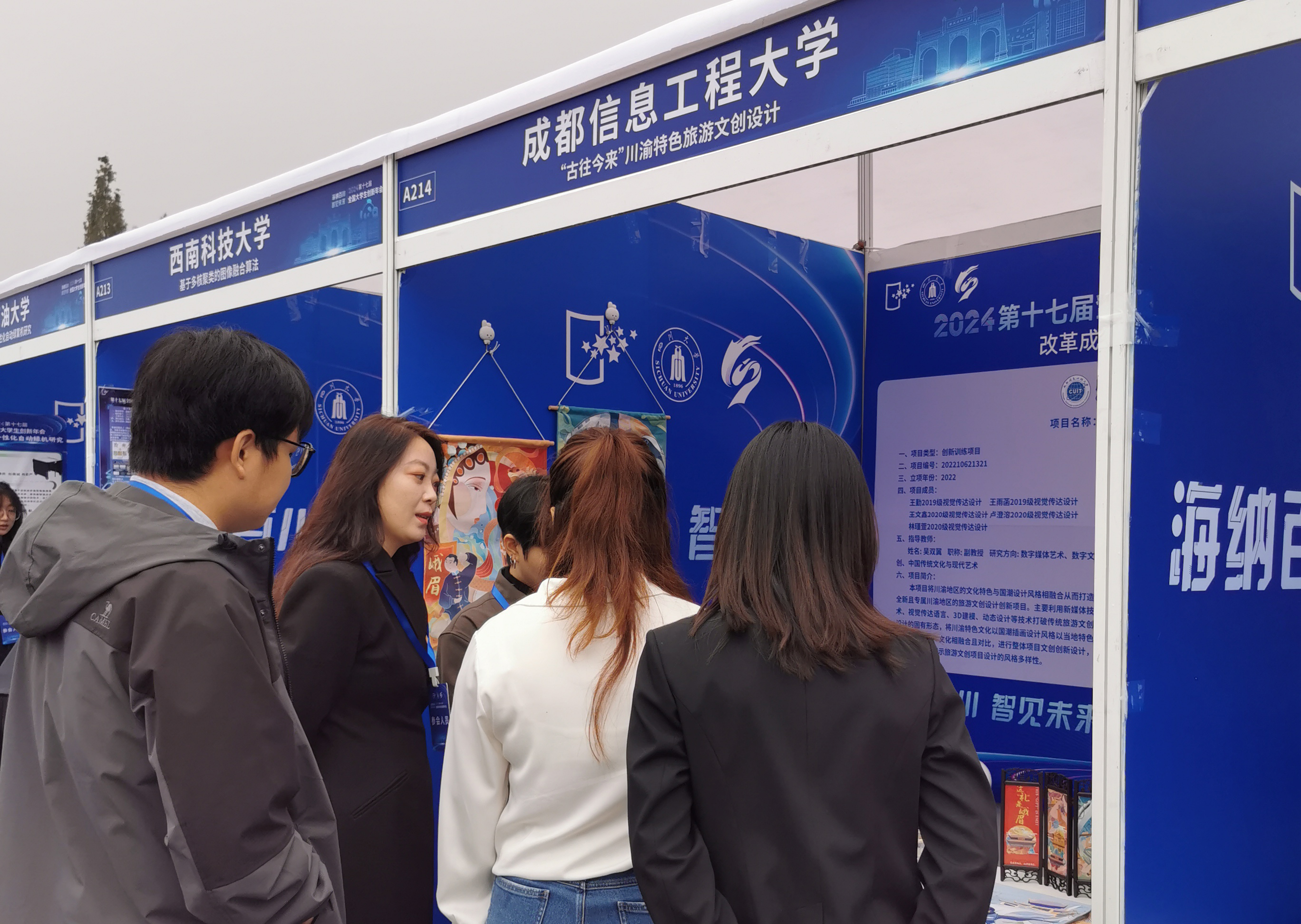 【本网讯】第十七届全国大学生创新年会共收到部属高校和地方教育主管部门推荐项目1006项。经过相关专家初评、“国创计划”专家工作组复选,共有510项成果入选年会,其中学术论文200篇、创新创业项目改革成果展示250项、创业推介项目60项。伟德官网国家级创新训练项目——“古往今来”川渝特色旅游文创设计,作为创新创业项目改革成果展示,入选本届年会。