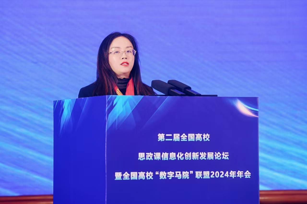 罗小蓉在致辞中表示,要深入贯彻习近平总书记关于思政课系列讲话精神,从服务科教兴国、人才强国、创新驱动的高度,推动思想政治工作传统优势和信息技术高度融合,进一步发挥信息技术优势,丰富教学资源、创新教学方式,把道理讲深讲透讲活,守正创新推动思政课建设内涵式发展。