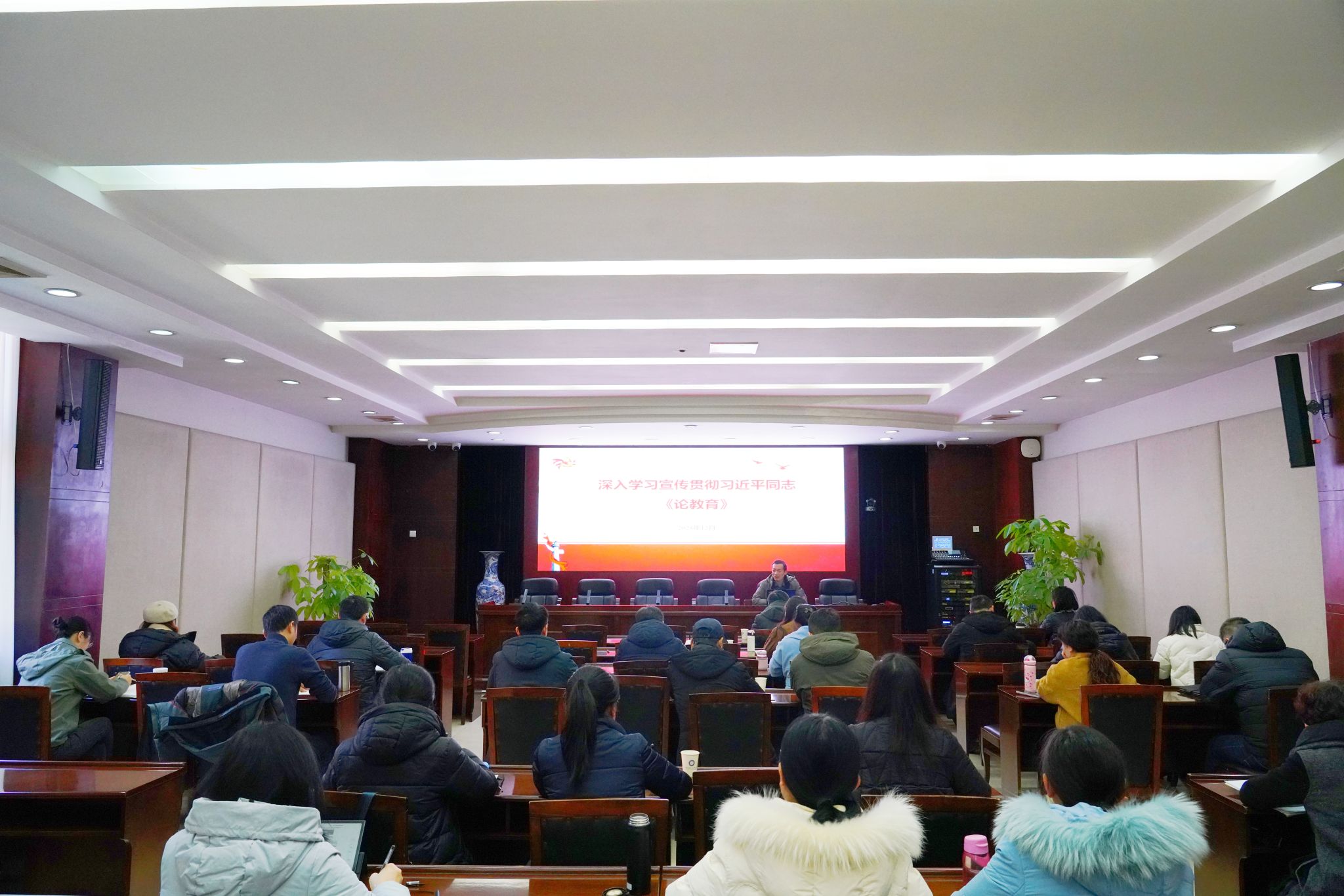 【本网讯】12月30日下午,学校党委副书记杨奇才在行政楼第一会议室开展深入学习宣传贯彻习近平同志《论教育》专题宣讲。