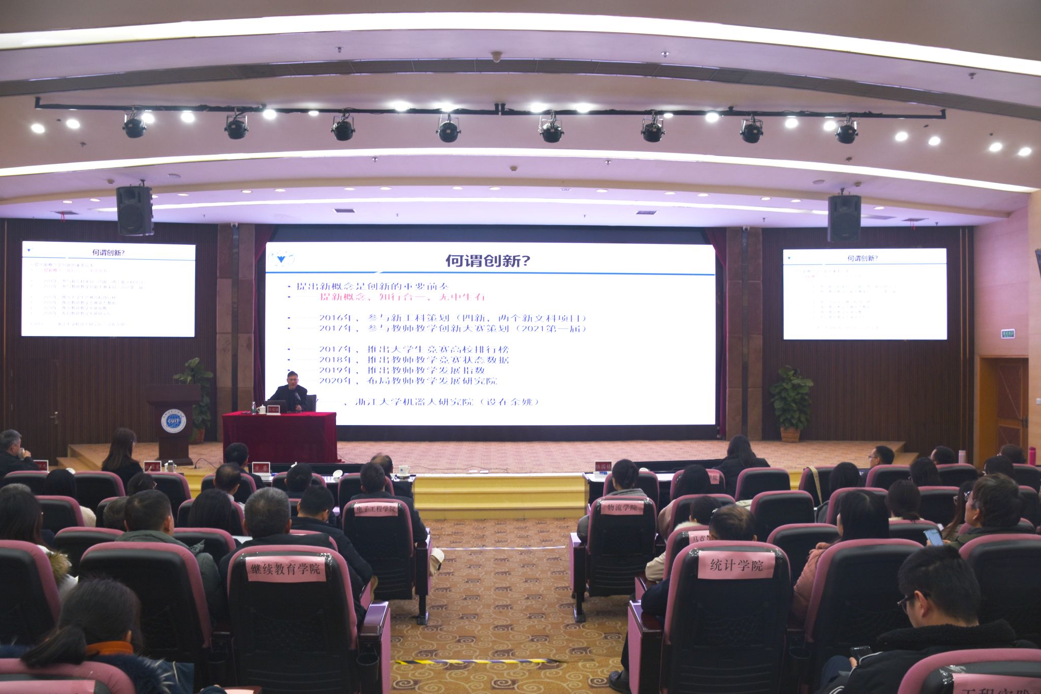 【本网讯】1月3日下午,中国高等教育学会工程教育专业委员会秘书长、中组部“万人计划”教学名师、浙江大学陆国栋教授应邀到伟德官网作了“教学成果培育凝练与案例解析”的专题报告。学校校长何建新,人事处(教师发展中心)、教学评估中心、教务处负责人,各教学单位领导班子、专业、一流课程、省级教研教改项目、专业课程类基层教学组织负责人等教师代表参加本次报告会,会议由教务处处长方睿主持。