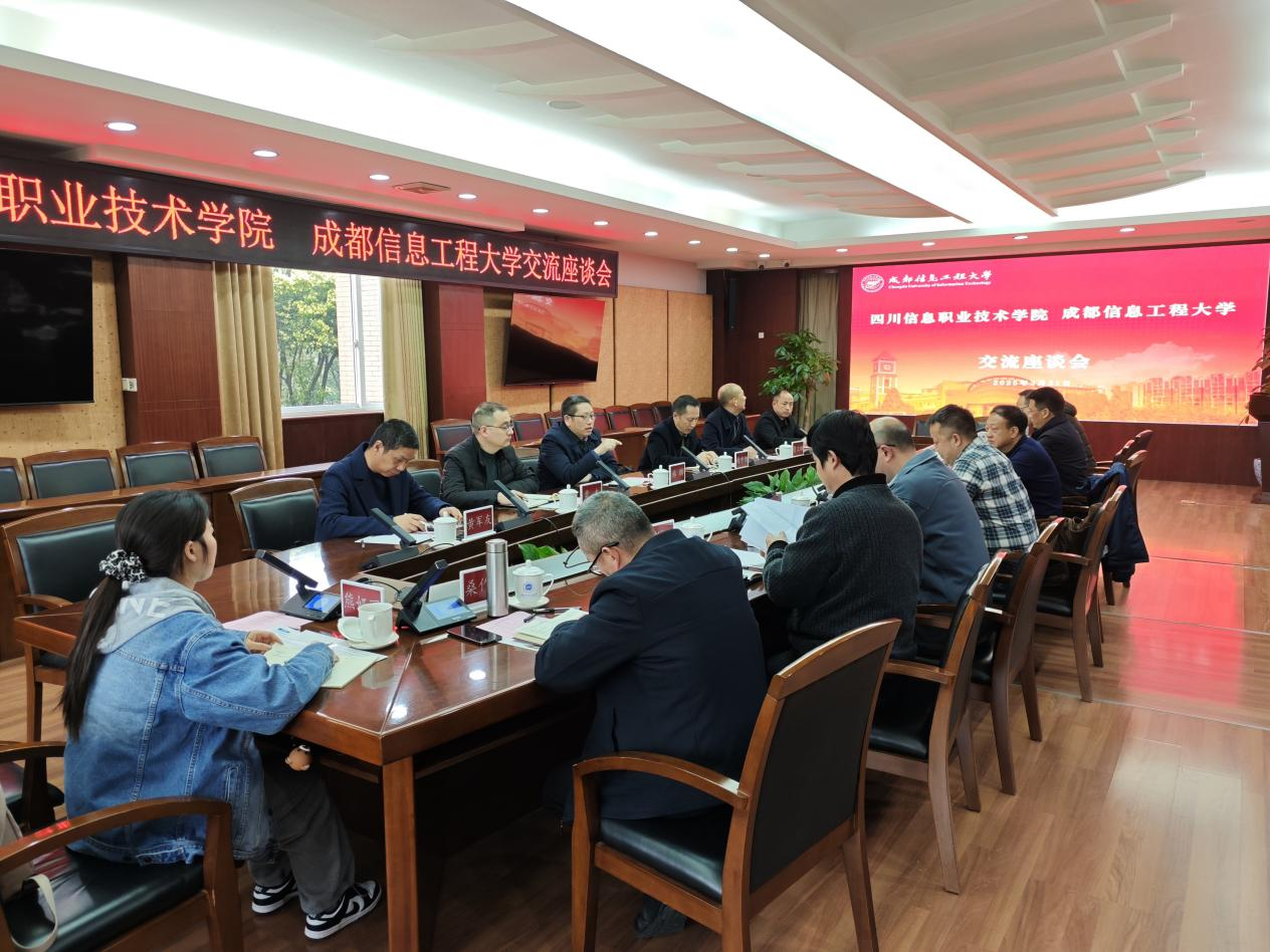 四川信息职业技术学院党委委员、副院长母中旭,党委组织部、教务处、科技与社会服务处相关负责人,学校党委组织部、人事处、国内合作处、教务处、科技处、软件工程学院、物流学院、人工智能学院(区块链产业学院)、继续教育学院相关负责人参加座谈。