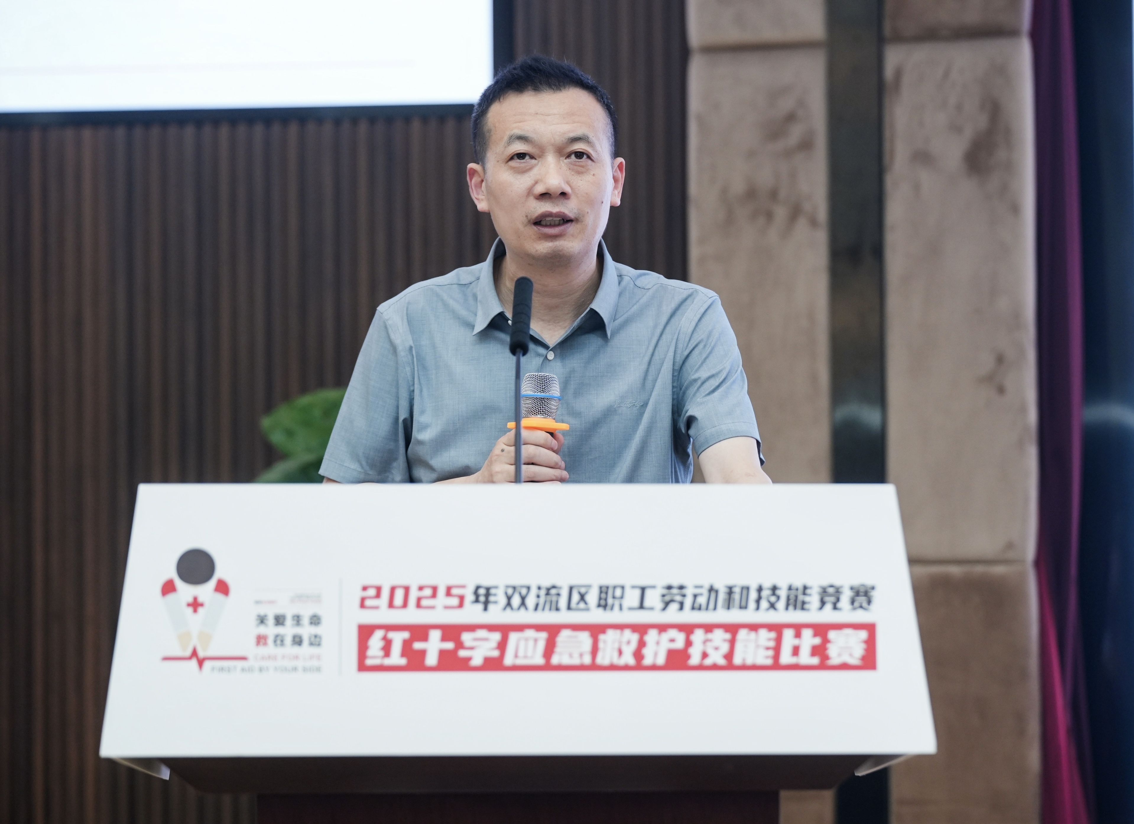 双流区政府党组成员、双流自贸区管理局专职副局长、区城管和综合执法局党组书记(兼)傅成曦在致辞中对近年来区红十字会积极推进应急救护培训社会化服务表示高度肯定。他提出,要以此次比赛为契机,进一步营造“人人学急救,急救为人人”的浓厚氛围,增强城市韧性,传递城市温情,为加快建设社会主义现代化高品质空港双流而不懈奋斗。