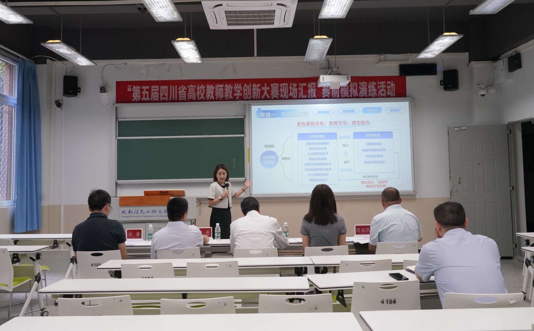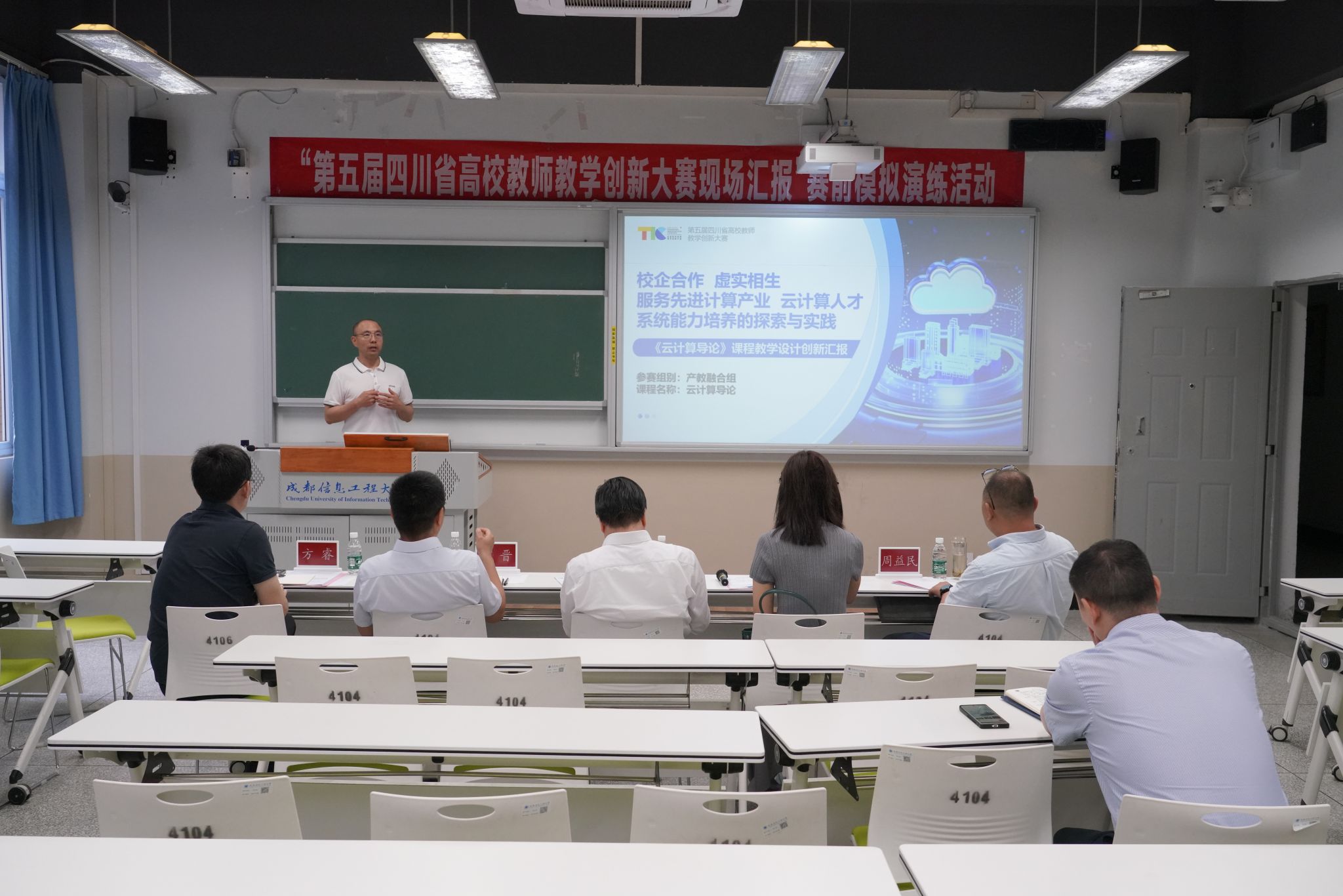 【本网讯】6月3日,学校在航空港校区第四教学楼4104教室组织开展了“第五届四川省高校教师教学创新大赛现场汇报”赛前模拟演练。学校党委书记、国家教学名师沈火明教授现场指导点评。学校副校长何晋,人事处处长杜国宏,全国高校教师教学创新大赛评委方睿、周益民,伟德官网入围省赛现场汇报环节的教师参加演练。汇报演练由杜国宏主持。