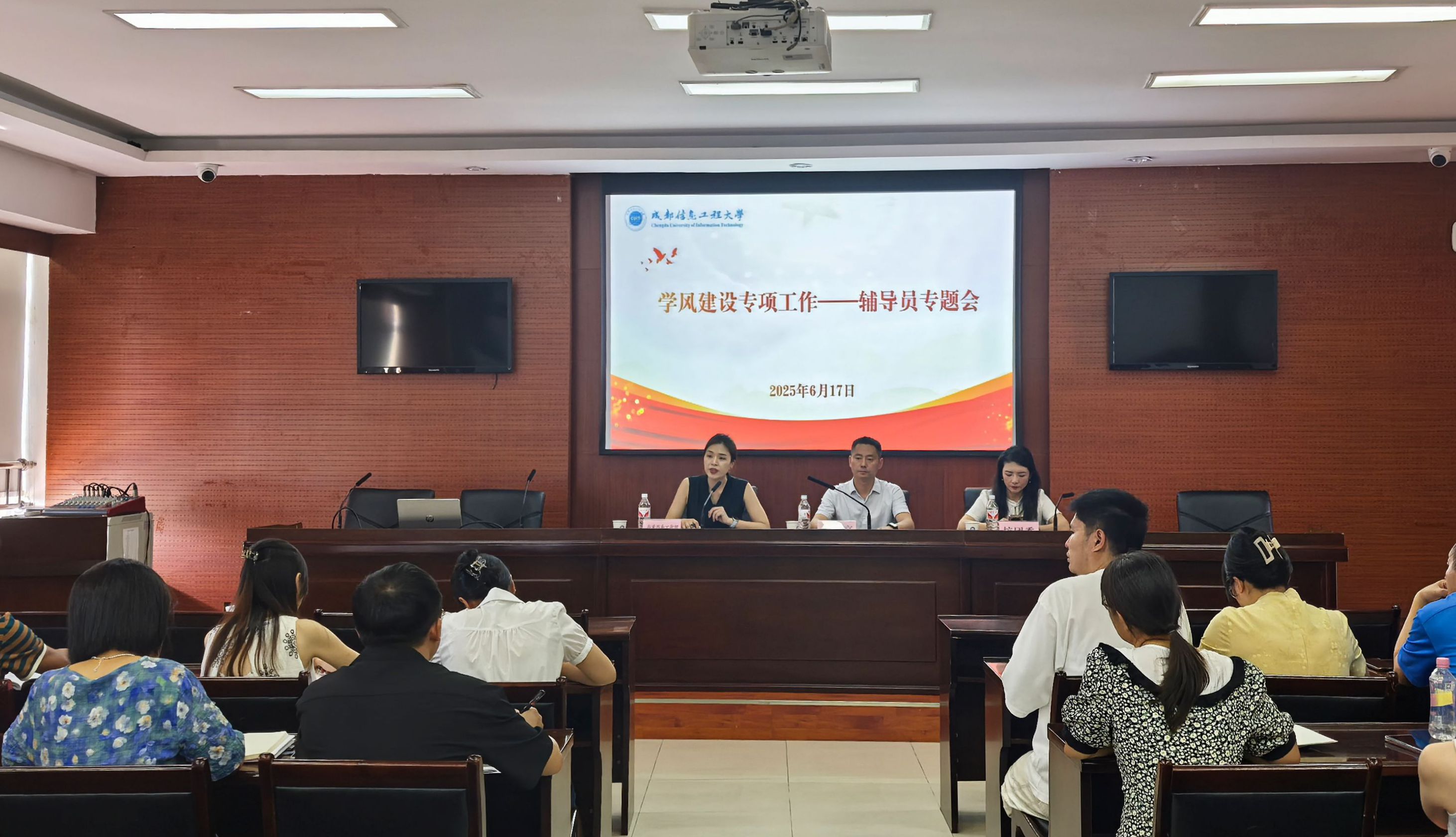 【本网讯】6月17日,学校分别在航空港校区第七会议室和龙泉校区第二会议室召开学风建设专项工作——辅导员专题会议,学校副校长陈权亮,党委学生工作部、校团委负责人以及各学院辅导员老师参加此次会议。会议分别由党委学生工作部部长龚晓林、副部长陈敏主持。