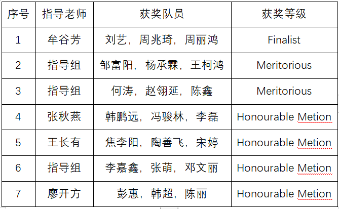 【本网讯】近日,美国大学生数学建模竞赛成绩揭榜,伟德官网有7支队伍获奖,获奖人数再创新高。自2024年美国大学生数学建模竞赛项目启动报名,应用数学学院建模指导组积极开展赛事宣传,号召同学参与备战。在指导老师的悉心指导下,学生们不负众望,成绩再创新高,取得历史性突破。荣获Finalist (特等提名奖F奖)1项,Meritorious Winner (一等奖M奖)2项,Honorable Mention (二等奖H奖)4项。其中,获得特等提名奖F奖是伟德官网又一全新突破,创造了伟德官网在该项竞赛上的最好成绩。
