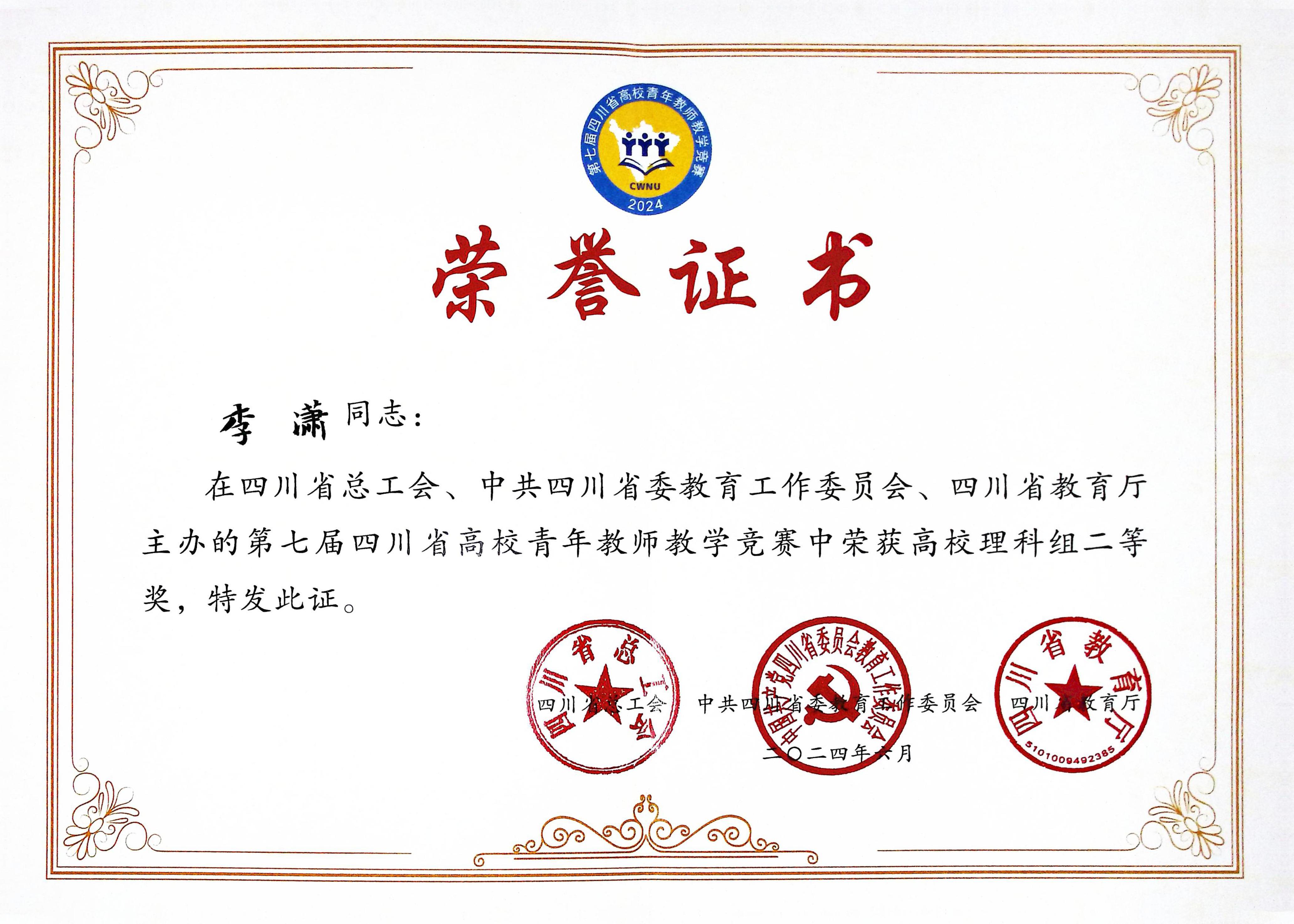 本届教学竞赛设高校文科、理科、工科、医科(含高职)、思想政治课专项(含高职)等组别,预赛于今年4月-5月举行,共有来自全省129所高校的336名青年教师参加。经过激烈角逐,最终67所高校的140名青年教师晋级省级决赛。在本次决赛中,伟德官网大气科学学院教师李潇获高校理科组二等奖,学校荣获优秀组织奖。此次获奖是伟德官网历史最好成绩。