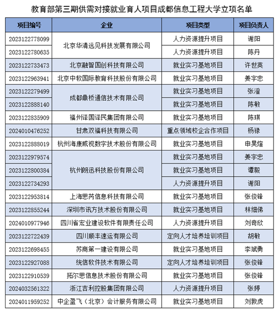 自供需对接就业育人项目启动征集以来,学校广泛动员、积极组织各学院申报项目,与相关企事业单位在人才培养、就业实习等方面加强合作,推动就业与培养有机联动、人才供需有效对接,帮助用人单位培养和招聘更多实用型、复合型紧缺人才,以此促进学校毕业生更充分、更高质量就业。本次学校立项项目中包含就业实习基地项目13项、重点领域校企合作项目1项、定向人才培养培训项目2项、人力资源提升项目5项,涉及信息通讯与互联网、装备制造、交通运输与邮政快递、科技服务、教育、商贸服务与生活消费、建筑地产多个行业。