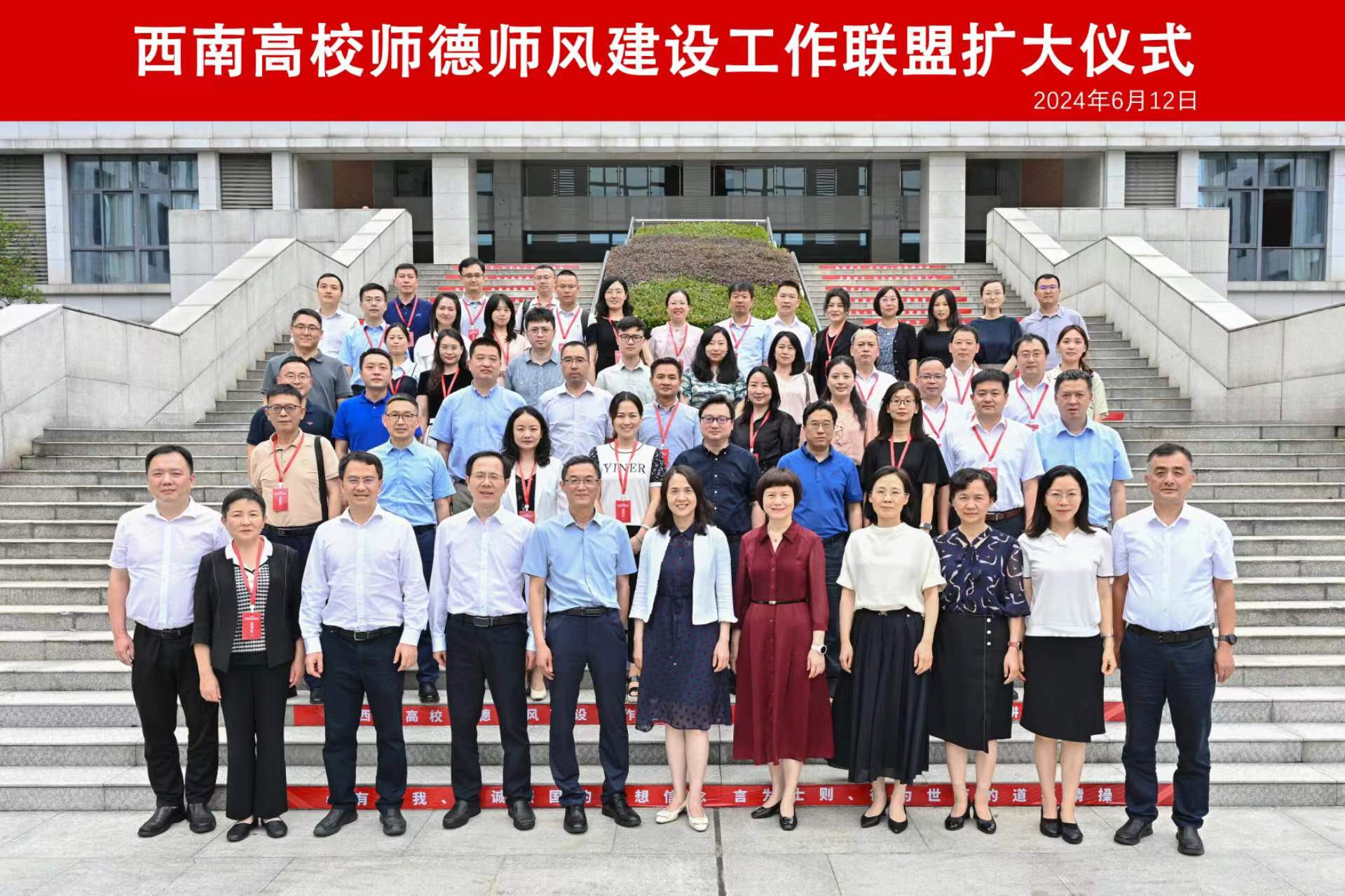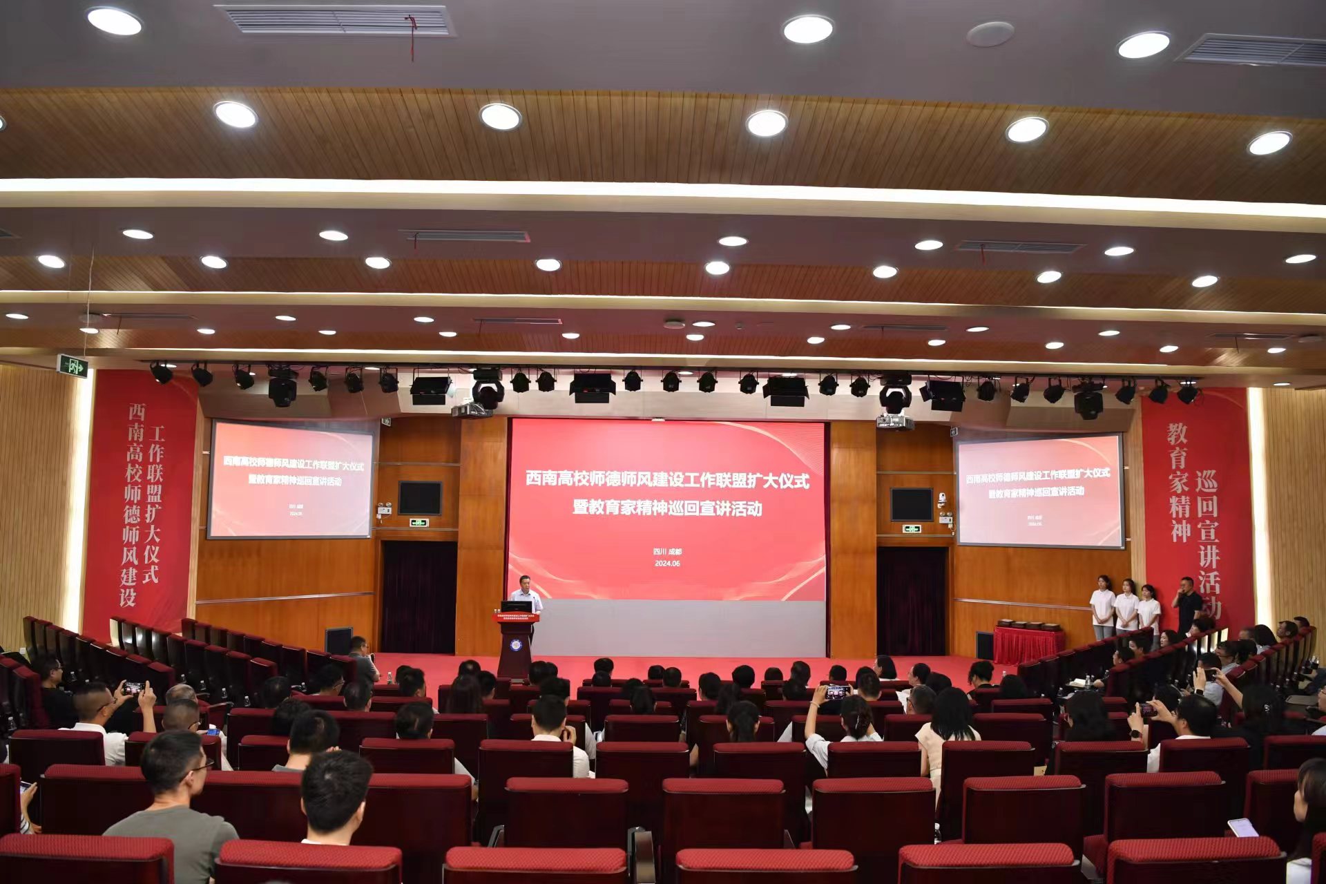 【本网讯】6月12日,西南高校师德师风建设工作联盟扩大仪式暨教育家精神巡回宣讲活动在电子科技大学举行。活动邀请教育家精神巡回宣讲团成员,北京师范大学肖向荣教授、浙江大学苏德矿教授分别作宣讲报告。教育部教师工作司副司长韩劲红,30余个联盟成员单位相关负责同志以及党委教师工作部负责人参加活动。受电子科技大学邀请,伟德官网人事处(党委教师工作部)处长杜国宏参加了会议。