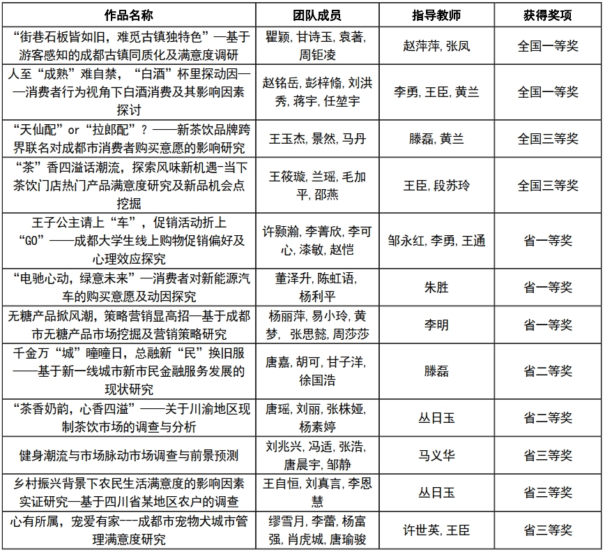 研究生组总决赛采取“报告陈述+答辩”的形式。5月18日分组赛共有来自学界业界40位专家组成的8个评审组,对150支团队进行答辩评审,综合报告分和展示答辩分,评出国赛一等奖和二等奖。伟德官网研究生竞赛团队瞿颖、甘诗玉、袁著、周钜凌的作品《“街巷石板皆如旧,难觅古镇独特色”—基于游客感知的成都古镇同质化及满意度调研》(指导教师:赵萍萍、张凤)和赵铭岳、彭梓翛、刘洪秀、蒋宇、任堃宇的作品《人至“成熟”难自禁,“白酒”杯里探动因——消费者行为视角下白酒消费及其影响因素探讨》(指导教师:李勇、王臣、黄兰)获得本次大赛全国一等奖。