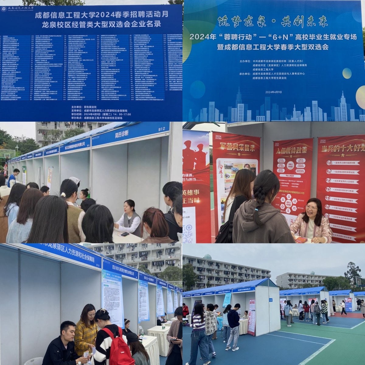 【本网讯】4月9日下午,2024年春季招聘活动月龙泉校区大型双选会在龙泉校区篮球场举行。来自省内外的200余家用人单位参会,提供岗位4000余个,涵盖教育、金融、统计、物流、文化、公共服务等多个行业领域。双选会吸引了千余名毕业生参加。