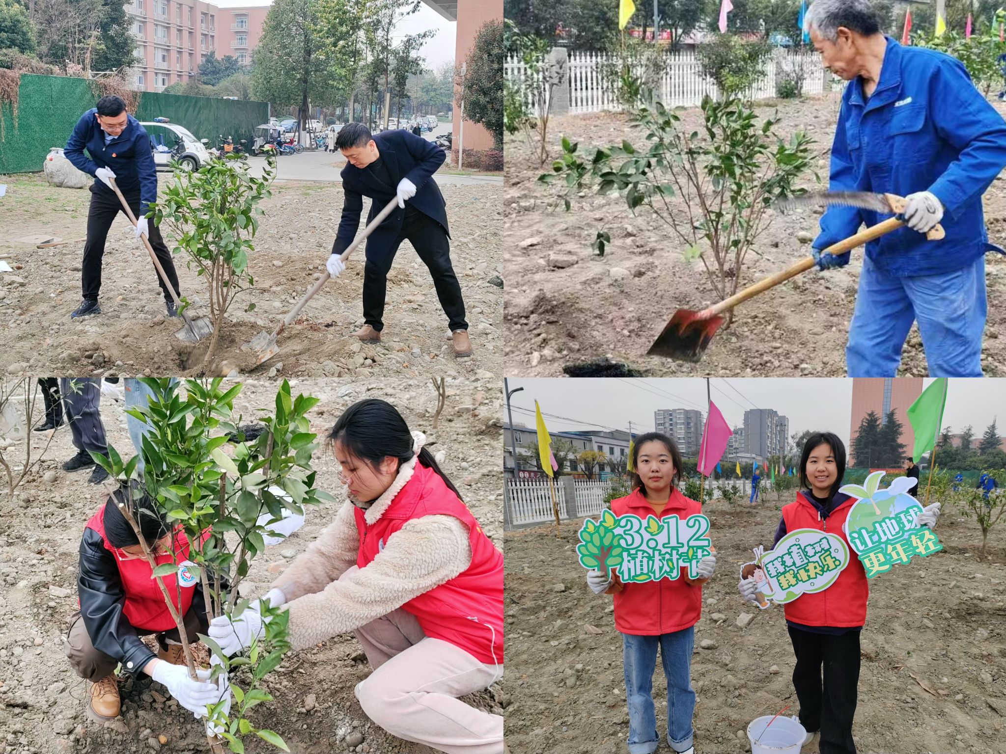 在活动现场,师生们细致认真、有条不紊地扶植树苗,开荒铲土,一棵棵树苗挺拔树立,为航空港校区增添了更多绿意,大家在植树活动中收获了劳动的喜悦,为共建共享美丽生态校园贡献了力量。