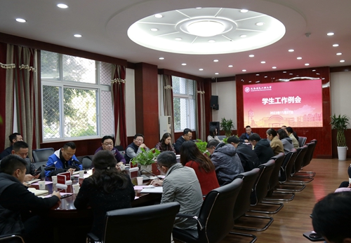 党委学生工作部负责人对近期学生相关工作进行了安排和部署,研究生处、招生就业处负责人分别对芯谷校区研究生管理、学生就业等工作进行了通报和安排。
