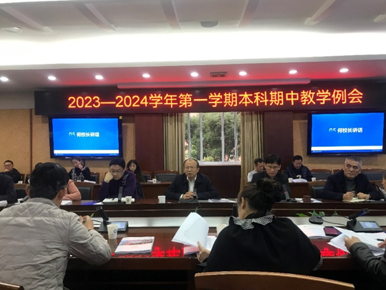 【本网讯】11月21日下午,学校在航空港校区第七会议室召开本学期本科期中教学检查与调研工作总结会。校长何建新,学校教学督导组,党委学生工作部、教学评估中心、教务处负责人,各教学单位分管本科教学工作负责人、教务科科长,职能部门相关人员等参加了会议。会议由教务处处长方睿主持。