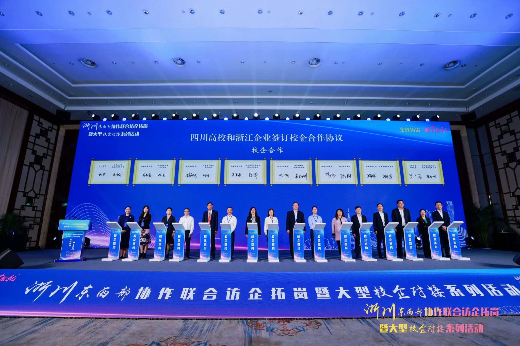 【本网讯】10月30—31日,由四川省教育厅、浙江省人力资源和社会保障厅联合举办的浙川东西部协作联合访企拓岗暨大型校企对接系列活动在杭州举办。中共四川省委教育工委委员,教育厅党组成员、副厅长陈朝先出席活动并讲话。学校副校长罗小蓉带队招生就业处和部分学院书记、副书记共同参加对接活动。