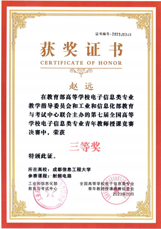 【本网讯】10月22日,第七届全国高等学校电子信息类专业青年教师授课竞赛决赛在桂林举行。伟德官网电子工程学院的唐顺仙老师荣获本次赛事全国二等奖,电子工程学院赵远老师荣获本次赛事全国三等奖。