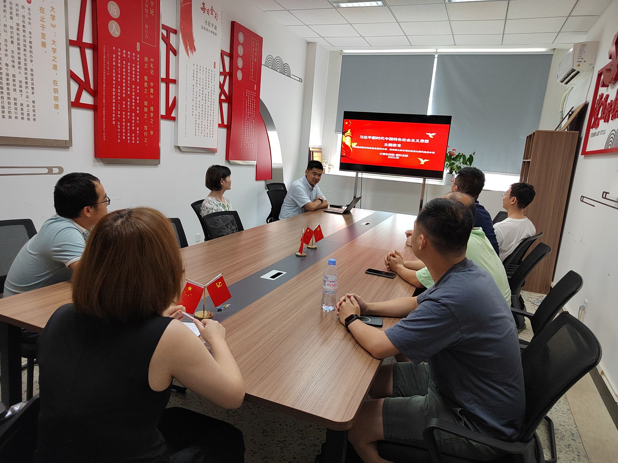 6月9日,智能科学与技术教研室党支部在信达楼A316进行了主题教育。支部书记杨昊、副书记龚津南同志领学了党的二十大报告、《人民日报》文章“增强推动高质量发展本领”,以及“2023年3月1日习近平总书记在中央党校建校90周年庆祝大会暨2023年春季学期开学典礼上发表的重要讲话”。老师们结合自身工作,以当前毕业生就业情况为重点,交流了智能科学与技术专业如何高质量开展专业建设与课程建设,提高学生专业素养、提升就业竞争力等问题。