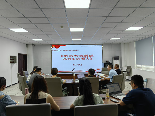 【本网讯】6月30日,网络空间安全学院党委理论学习中心组(扩大)在信达楼B409召开学习贯彻习近平新时代中国特色社会主义思想主题教育专题学习研讨会,会议围绕“不断提升政治能力、思维能力、实践能力”,结合深入学习贯彻习近平总书记关于主题教育系列重要讲话、树立和践行正确政绩观重要论述,以及学习运用浙江“浦江经验”“千万工程”经验案例开展专题学习研讨。会议由学院党委副书记陈智勇主持,学院党委委员、科级以上干部、党支部书记参加了学习。