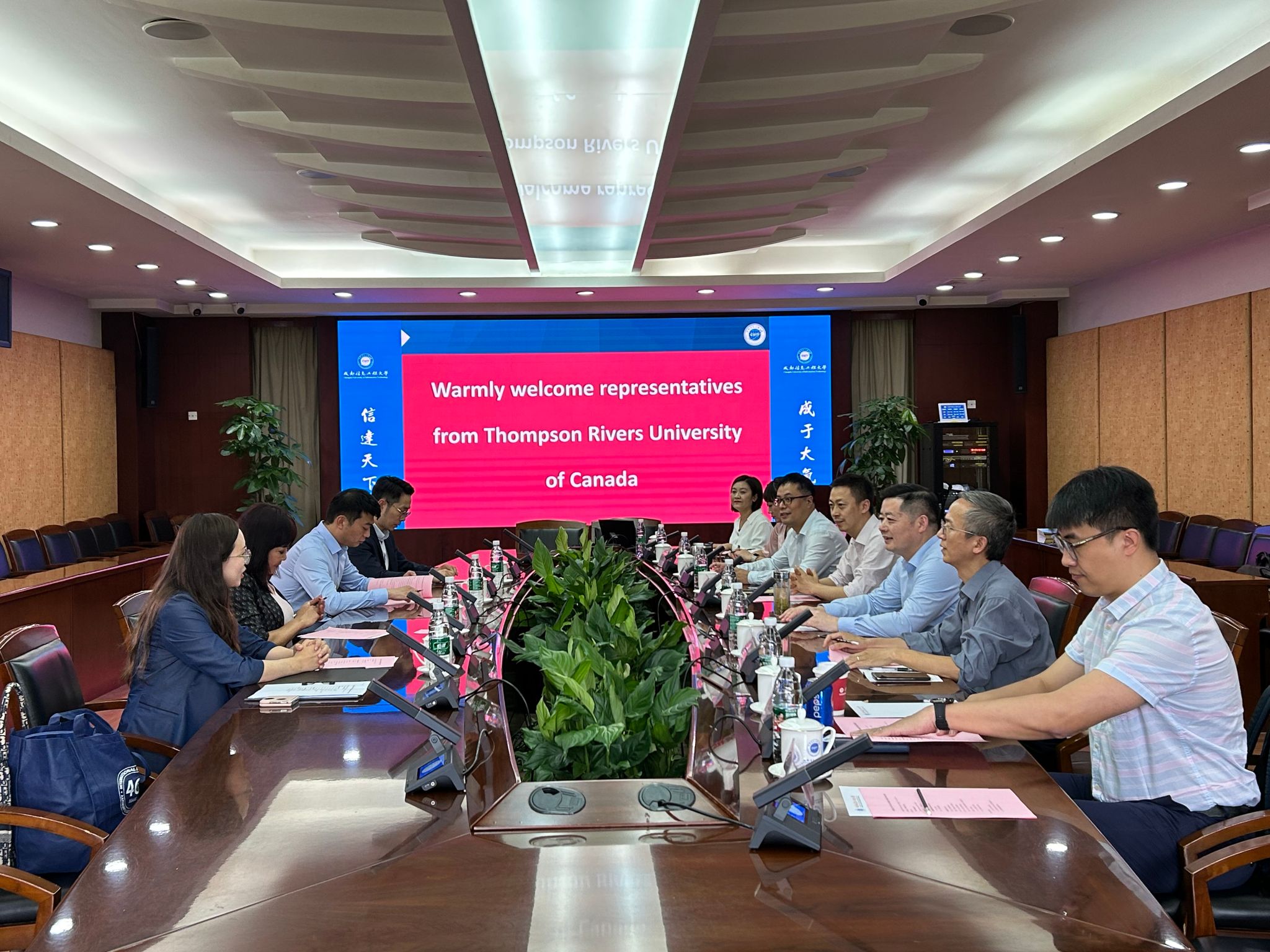 雷超对Baihua Chadwick一行表示热烈欢迎并介绍了学校国际化发展现状,许源平介绍了学校与TRU共同举办数据科学与大数据技术专业本科中外合作办学项目的工作推进情况,唐聃介绍了软件工程学院的专业发展历史和教学情况,王亚强详细介绍了软件工程学院数据科学与工程专业的办学情况及专业课程的设置。