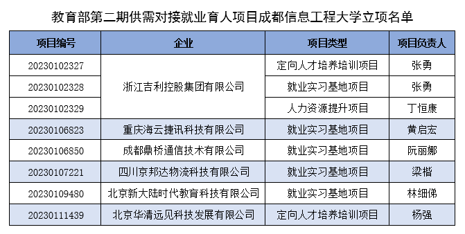 【本网讯】为落实党中央、国务院“稳就业”“保就业”决策部署,深化产教融合、校企合作,推动人才培养与就业有机联动、人才供需有效对接,教育部高校学生司于2021年组织发起教育部供需对接就业育人项目。近期教育部高校学生司对外发布了《关于公布2022年第二批供需对接就业育人项目立项名单的通知》,伟德官网获批8项教育部第二期供需对接就业育人项目立项。项目类型涵盖就业实习基地、人力资源提升、定向人才培养培训三大类。