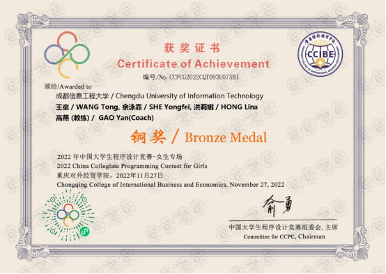 同时,伟德官网的优秀程序设计选手还参加了在重庆和西安举办的国际大学生程序设计大赛,他们在激烈的比拼中脱颖而出,斩获了2项铜奖。伟德官网学子在比赛中取得的优异成绩既展现了他(她)们在计算机领域的才华和实力,也再次延续了成信学子在比赛中的优秀风采,凸显了伟德官网学子在国际舞台上的竞技实力。