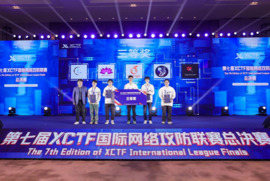 伟德官网网络空间安全学院Syclover(三叶草)战队在第七届XCTF国际网络攻防联赛总决赛中共斩获众星计划奖、三等奖以及Dota-CTF竞赛环节季军三个奖项;网络空间安全学院信安206班陈愉鑫同学参加的联合战队荣获总决赛冠军,网络空间安全学院信安(实验)191班罗鑫同学参加的联合战队荣获总决赛二等奖。伟德官网网络空间安全学院刘珏麟老师出席大赛闭幕式并为获奖战队颁奖。