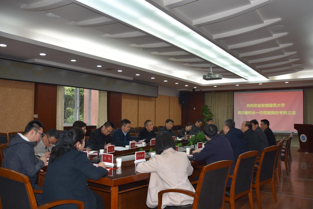 何建新代表学校对闵杰一行来校调研表示热烈欢迎,并简要介绍了学校的发展历程、学科专业和办学特色等方面的情况。闵杰简要介绍了安徽建筑大学审核评估工作进展情况。双方均表示,希望加强行业类兄弟院校间的友好交流,共谋特色发展之路。