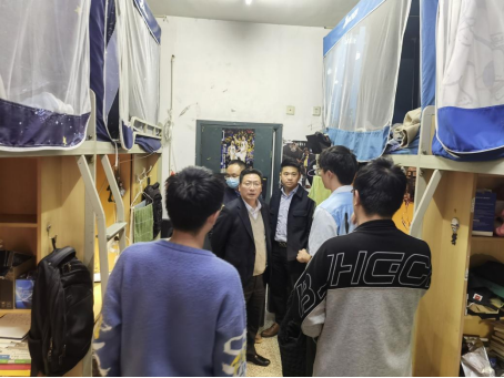 11月28日晚上,网络空间安全学院党委书记张仕斌、党委副书记陈智勇、学生科科长姜艳、学生科副科长贾茜、分团委书记夏焜、各级辅导员一行走访10栋、18栋等学生公寓,与同学们亲切交流。
