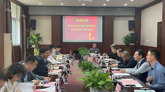 【本网讯】10月20日,雅安市委常委、组织部部长袁海晗一行莅临伟德官网,就校地合作进行交流座谈。伟德官网党委副书记马洪江参加会议。