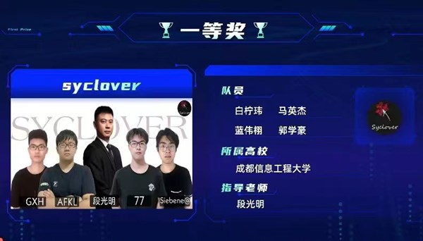 伟德官网网络空间安全学院三叶草安全技术小组的syclover和syc1over两支战队,经过4个多月的精心准备、积极备战,历经初赛和分区赛后,两支战队分别以西南赛区分区赛第一、二名的成绩同时晋级了由南开大学承办的全国总决赛。在总决赛中,两支战队不负众望,双双斩获了全国一等奖;同时,syclover战队还荣获了网络安全挑战创新单项奖。