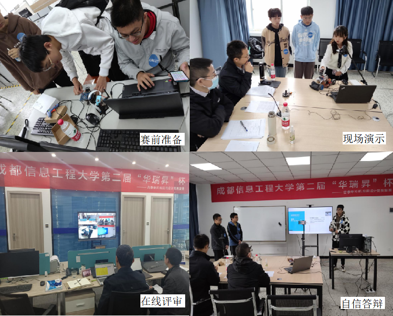 【本网讯】4月16日,第二届“华瑞昇”杯合泰单片机应用设计竞赛复赛在航空港校区信达楼举办。“华瑞昇”杯合泰单片机应用设计竞赛由教务处主办,通信工程学院(微电子学院)和华瑞昇电子(深圳)有限公司承办。本届竞赛吸引了来自通信工程、电子工程和控制工程等多个学院的48个学生团队共144名学生参赛。经过初赛评比和作品初评,最终有15支参赛团队进入复赛。按各级部门及学校防疫要求,竞赛复赛采用校内统一组织,校外人员线上参加的方式进行。由校内专家和企业工程师组成的评审团对各复赛团队的作品、答辩及文案等完成情况进行综合评分,最终评选出一等奖1项、二等奖2项、三等奖3项以及规定题目特别优秀奖和优秀指导教师奖。