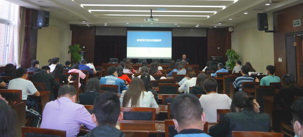 王晓刚从新闻类别、消息写作和分类写作等方面作了培训,并结合自身工作实践,着重围绕“新闻标题、导语、正文如何写”“新闻写作中的常见注意事项”等内容对新闻写作的基本知识和写作技巧进行了深入浅出的讲解。