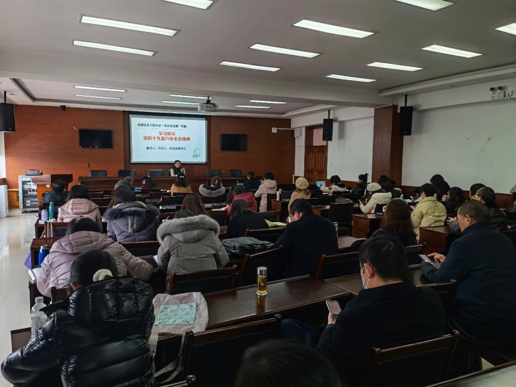 【本网讯】1月4日上午,学校党委副书记马洪江在龙泉校区1213教室为管理学院全体教职工讲授“党的十九届六中全会精神”专题党课,管理学院全体教职工参加学习,学院党委书记王子华主持。