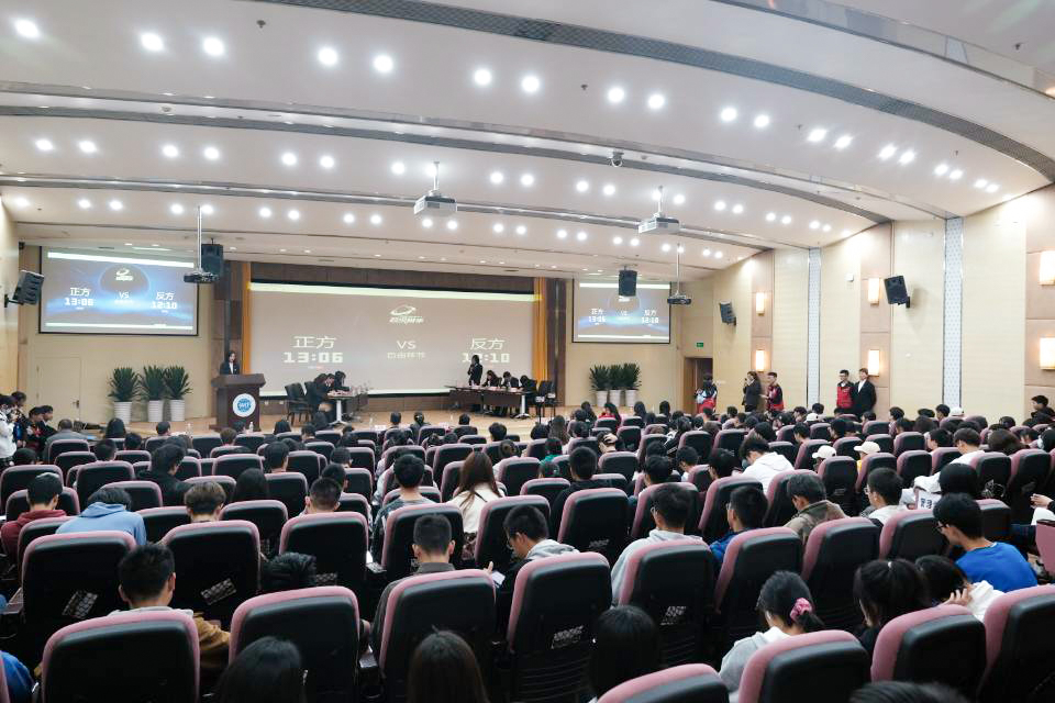 正式决赛之前,由各学院专业辩手组成的队伍为我们带来了题为“武侠是不是一场梦”的表演赛,为今晚的比赛拉开了帷幕。随后,紧张激烈的决赛角逐开始。双方围绕“自由/压力更能激发大学生的潜能”展开辩论。管理学院辩手为自由划上他的边界,控制工程学院辩手为压力诠释它应有之意,双方你来我往,妙语连珠。最后,经过评委组的讨论,控制工程学院代表队获得了此次“成信杯”校庆辩论赛冠军,管理学院代表队获得亚军,管理学院四辩获“最佳辩风”称号,控制工程学院三辩获“全场最佳辩手”称号,随后学校和学院领导为获胜队伍颁奖,本次“成信杯”辩论赛在一片掌声中落下帷幕。
