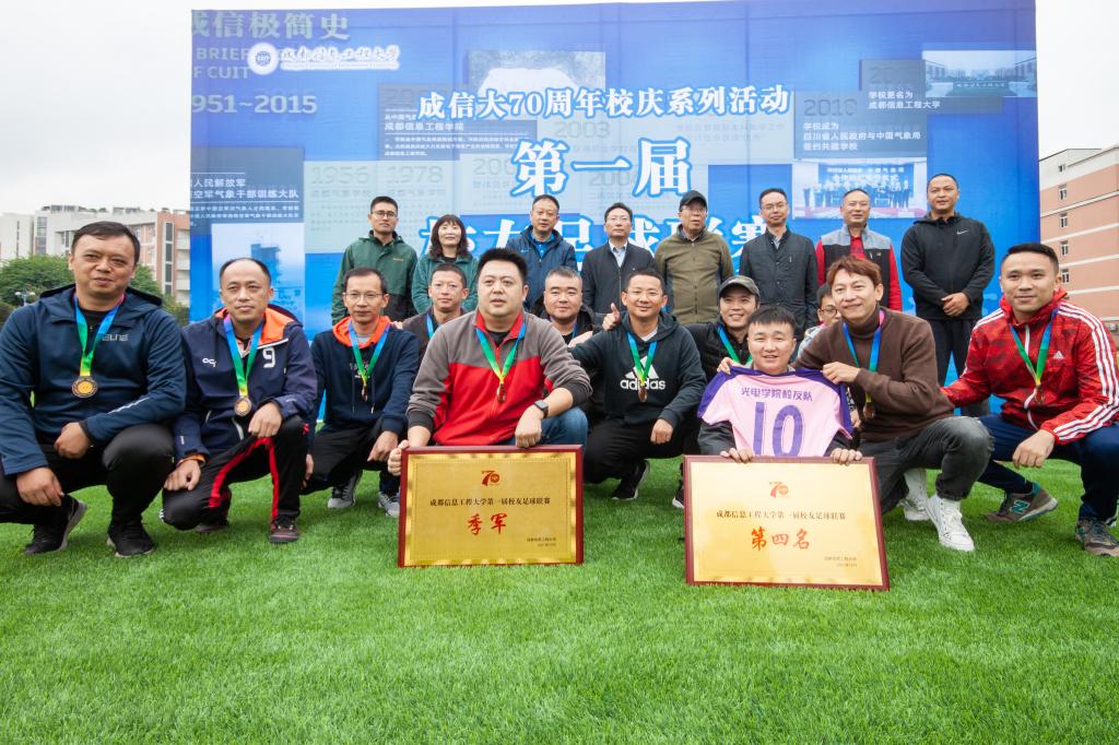 瑟瑟秋风无法熄灭校友们的热情,绿色的草坪与彩色的队服交相辉映,成为成信大赛场上的亮丽风景线。比赛体现出成信人顽强拼搏、团结协作的精神,展现出校友们追忆校园芳华的浓厚情谊,以及对母校建校70周年美好的祝福。