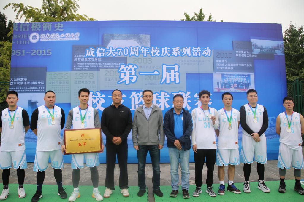 篮球联赛决赛结束后,裁判长公布比赛结果。学校副校长朱明,学生工作处、校友办公室、体育部相关负责人参加了颁奖仪式。