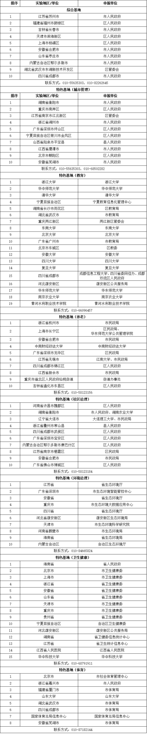 国家智能社会治理实验基地:由中央网信办、国家发展改革委、教育部、民政部、生态环境部、国家卫生健康委、市场监管总局、国家体育总局8部门联合发文组织申报。该项目以深入开展人工智能社会实验工作为目标,按照《国民经济和社会发展第十四个五年规划纲要和2035年远景目标纲要》关于加快数字化发展的重要部署,超前探索智能社会的运行模式、法律法规、标准规范、政策体系、体制机制等,计划到2025年,布局建成若干国家智能社会治理实验综合基地和一批特色基地,搭建一批智能社会治理典型应用场景,总结形成智能社会治理的经验规律和理论,出台一批智能社会治理的标准、规范和政策措施,完善适应智能社会治理的体制机制,打造一批智能社会治理的示范和样板,助力国家治理体系和治理能力现代化建设。