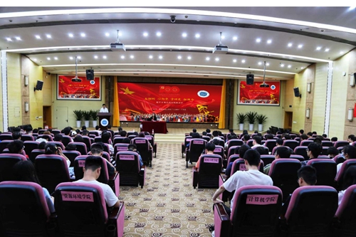 【本网讯】4月29日晚,学校在航空港校区国际会议厅举办“‘石榴籽’心向党 学‘四史’ 担使命”为主题的学习教育活动,邀请了控制工程学院党委书记王嵩作了题为“全民抗战中的中华民族共同体意识觉醒和升华”的讲座,内派教师吕艳、学校“石榴籽”工作室全体成员航空港校区各学院少数民族学生代表200余人参加活动。讲座由党委学生工作部副部长陈智勇主持。