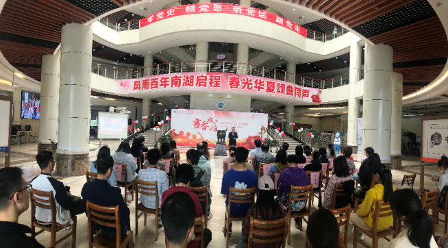 范广洲在启动仪式上致辞。他说:今年是我们伟大的中国共产党诞生100周年,“书香成信”文化推广活动以“苦难与荣光”为主题是非常契合形势的。作为新时代大学生,应该充分响应习近平总书记在今年2月在“党史学习教育动员大会”上的号召“学史明理、学史增信、学史崇德、学史力行”。同时,他还以学校退休老校长、老书记邓忠德,一位参加了土地革命、长征、抗日战争、解放战争、抗美援朝等无数大小战役,在枪林弹雨中出生入死二十多年的老英雄的亲身经历,以及两位校友在各自平凡的工作岗位上勇于担当做出成绩的实际事例,激励师生们以实际行动来迎接建党100周年。并指出:经过多年的潜心建设与探索,“书香成信”已经成为校园的重要文化品牌,并且正在努力的向着建设校园精品文化品牌的方向迈进。校园文化推广,是学校文化建设中的重要组成部分,是一项全方位、多视角、齐参与的系统工程,今后我们必须进一步转变观念,牢固树立文化育人的教育理念,要在全校更加良好的形成联动、互动、齐动的工作机制,不断创新推广模式,不断刷新推广内容、不断壮大推广队伍、不断沉淀推广成果,让“春风浩浩诗书香,校园悠悠浸成信”永远成为学校最亮丽的风景,并预祝活动取得圆满成功。
