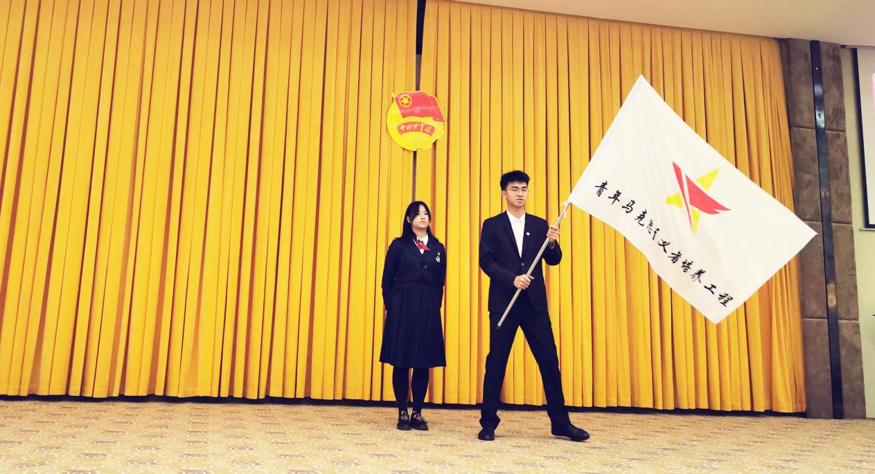 第十五期大学生精英骨干培训班优秀学员阳青青作经验分享,希望各位骨干学生努力学习理论知识,注重学以致用,更好地服务同学、服务学校、服务社会。随后,两届“青马工程”精英骨干培训班学生代表进行了班旗的交接。