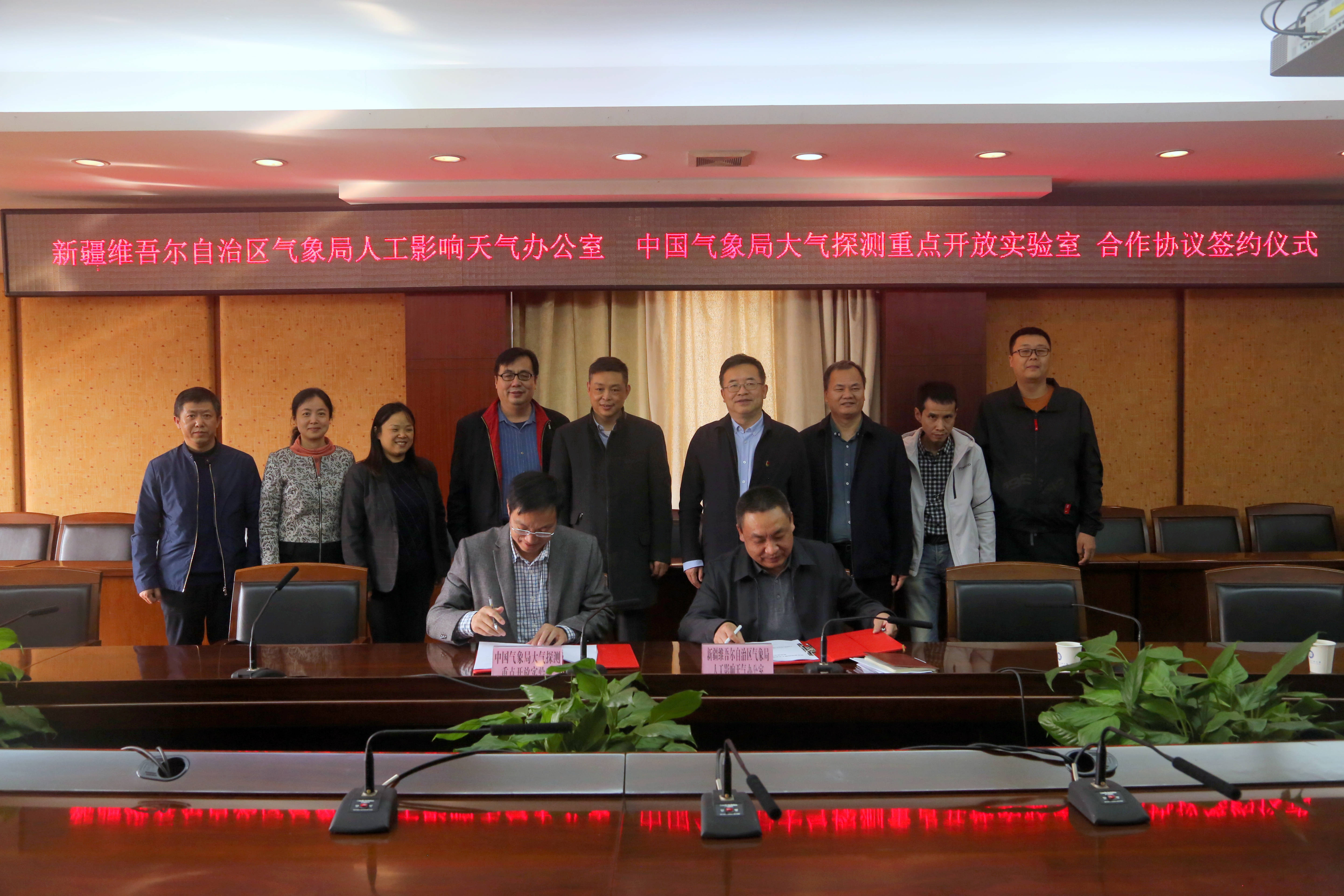新疆维吾尔自治区气象局人工影响天气办公室、减灾处、观测网络处,学校电子工程学院、人工影响天气研究院相关人员参加了签约仪式,并就科研项目合作、成果转化、人才培养等方面进行了深度交流。